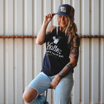 Built for the rebel rider, this black-and-gold trucker hat carries the spirit of MotoBella Vintage. The structured crown and breathable mesh back keep you cool on long rides, while the bold embroidered logo is a nod to the wild women who ride what they build.