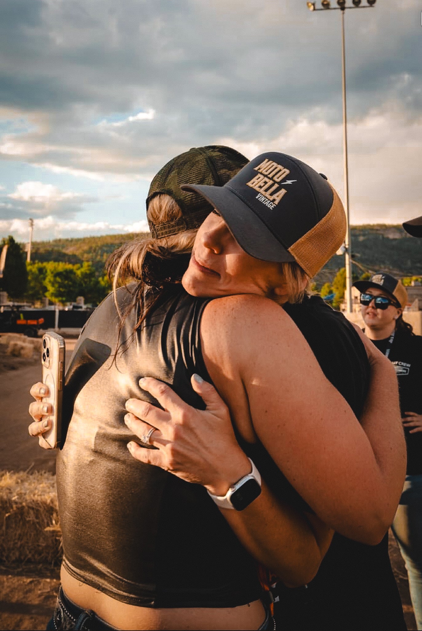 Embroidered MotoBella Vintage logo with lightning bolt detail