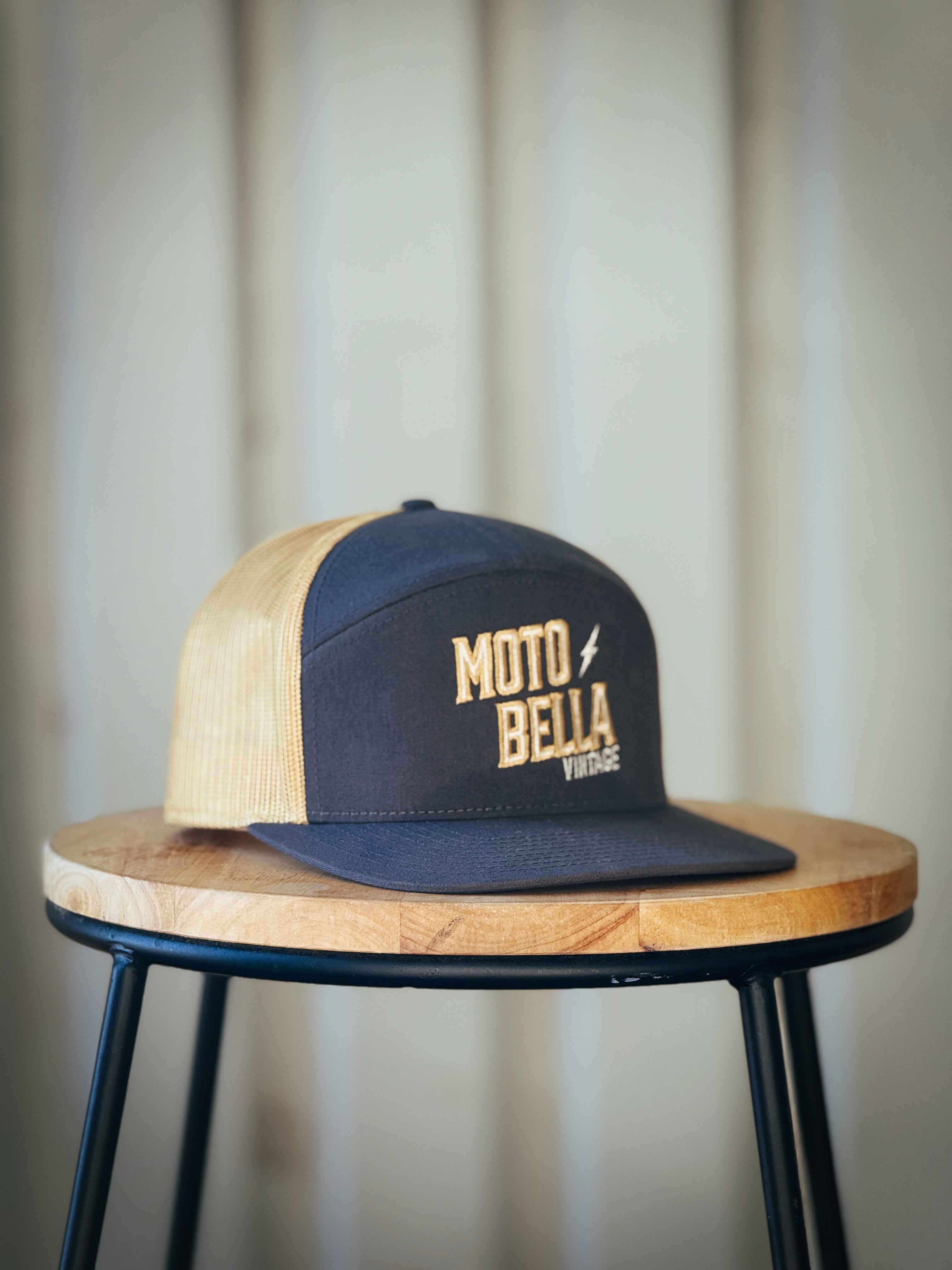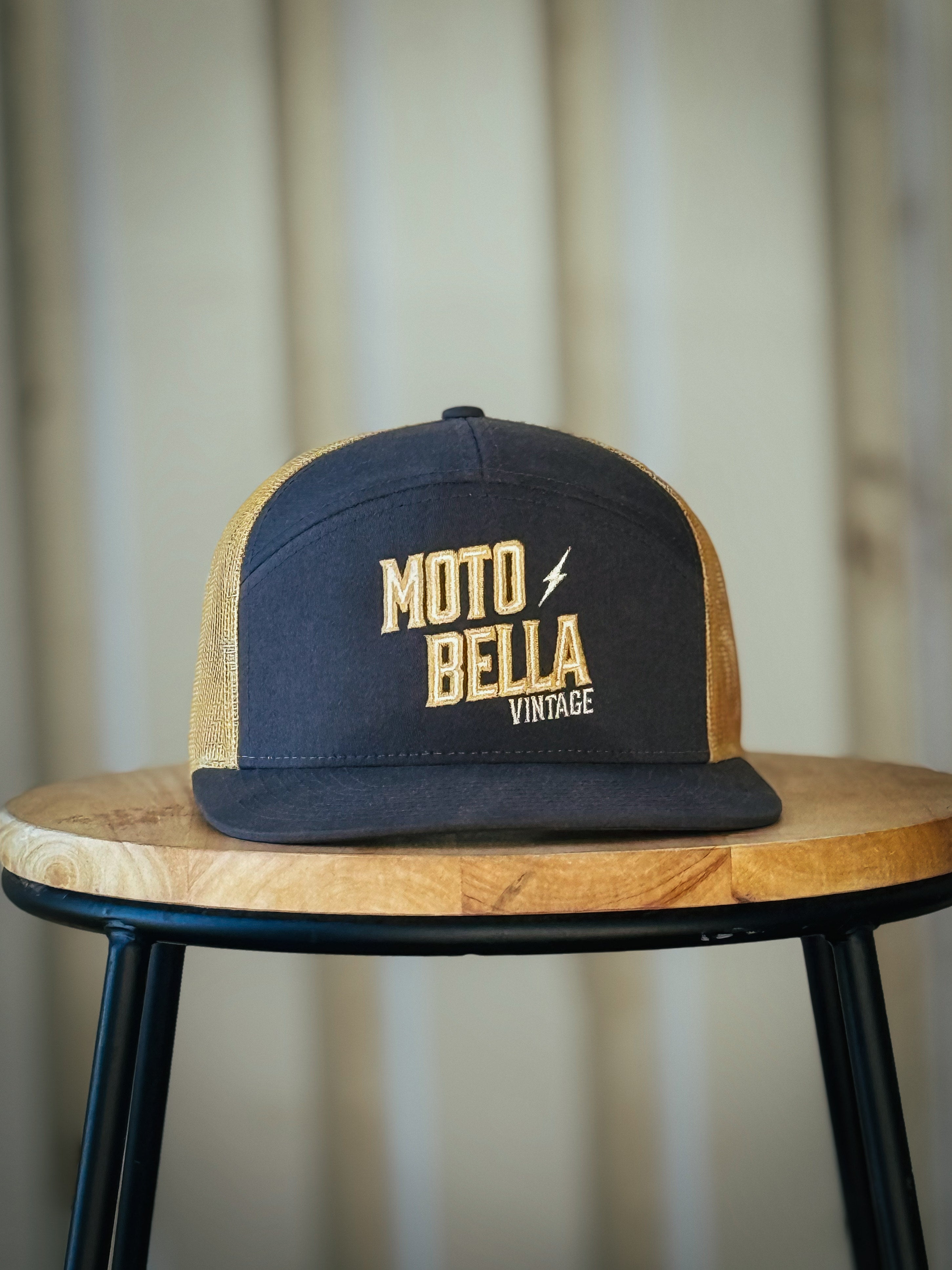 MotoBella Vintage Trucker Hat – Black & Gold Mesh