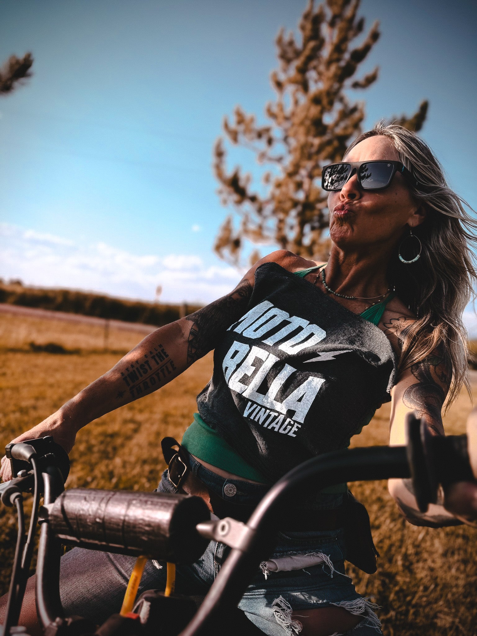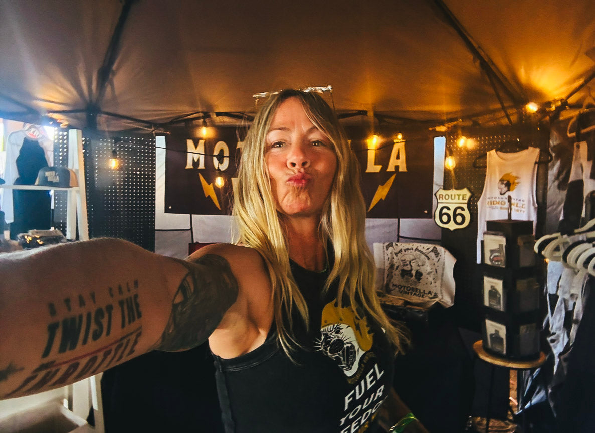 was born. The more I rode, the stronger the idea for Motobella Vintage became. I couldn't stop thinking about all the places to ride, the essentials I wanted to bring with me, and how each ride both challenged and inspired me. I discovered that I rode to feel good, let go, heal and return to my center. It became clear how powerful this path can be. All I wanted to do was design and make cool stuff to accompany the lifestyle and connect with other women going through similar life transitions. Creating this brand was the only option going forward, despite the fears. Heck, if I could ride a motorcycle at 50, I could finally follow a lifelong dream of having my own business. And so, here I am following that inner voice and passion, out here riding, creating and inviting YOU to join me.