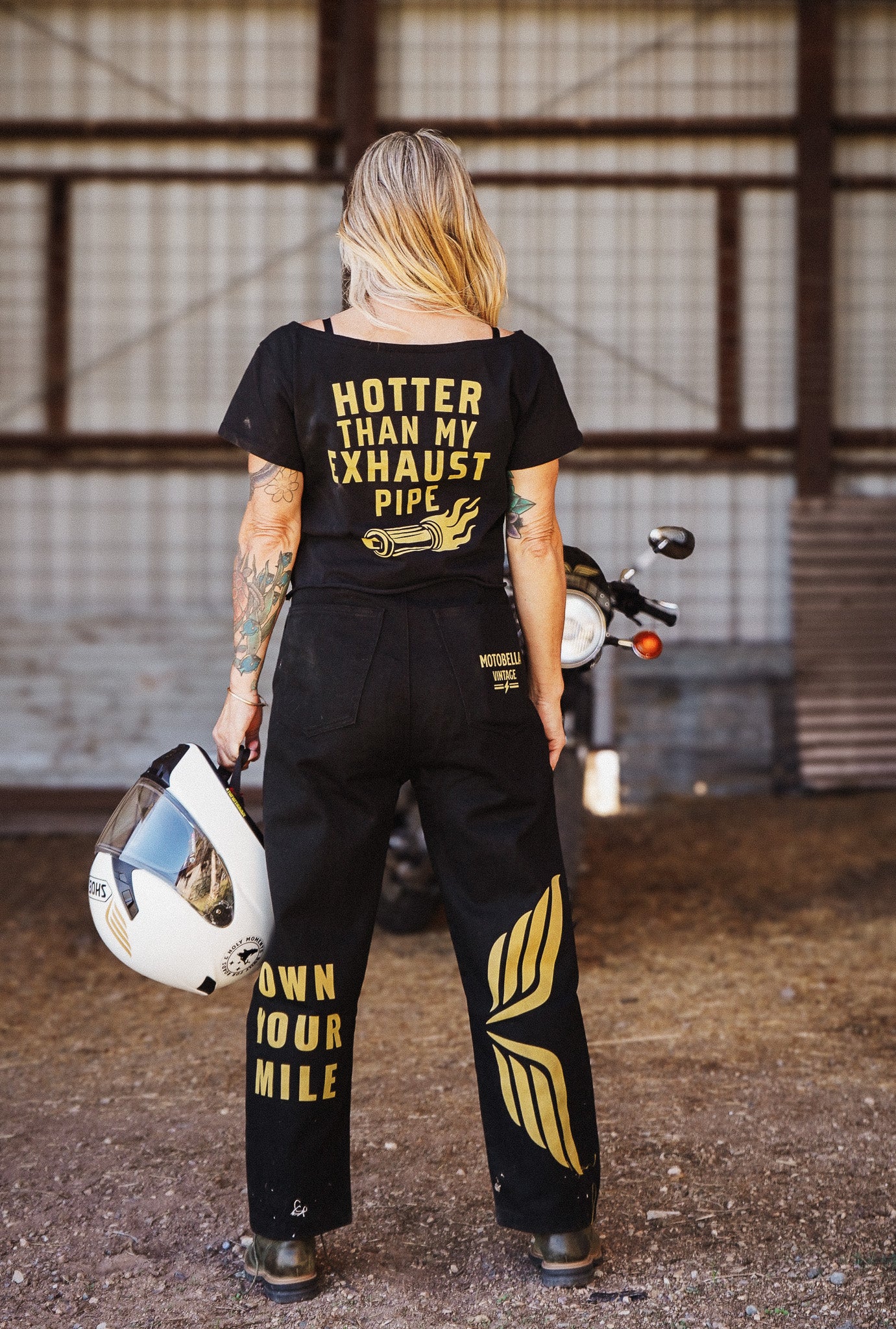 The Hotter Tee says what everyone’s thinking — vintage moto energy meets cheeky rebellion. Made for women who ride fast, get greasy, and own every mile and love showin a little skin.