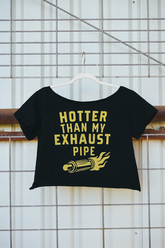 Hotter Than My Exhaust Pipe: Cropped Off The Shoulder T