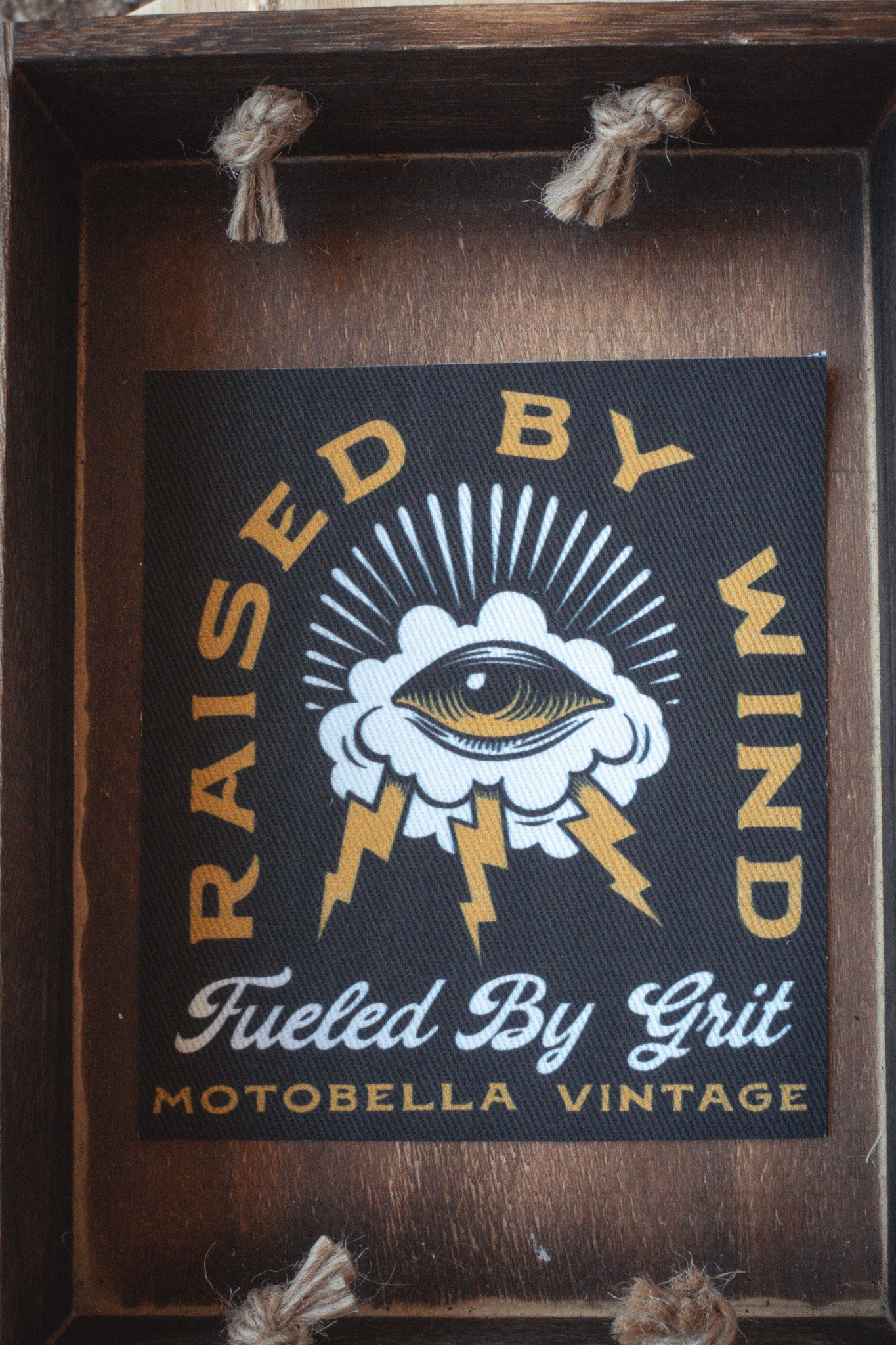 Raised by Wind, Fueled by Grit – All-seeing eye, storm, and lightning bolts.