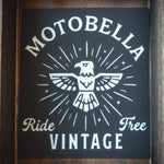 For the riders who wear their story on their sleeve (literally). These one-of-a-kind MotoBella Vintage patches are printed on heavy duck denim, finished with fusible backing for easy application, and ready to sew onto jackets, bags, or vests. Each design carries the rebel spirit — raw, symbolic, and built to last.